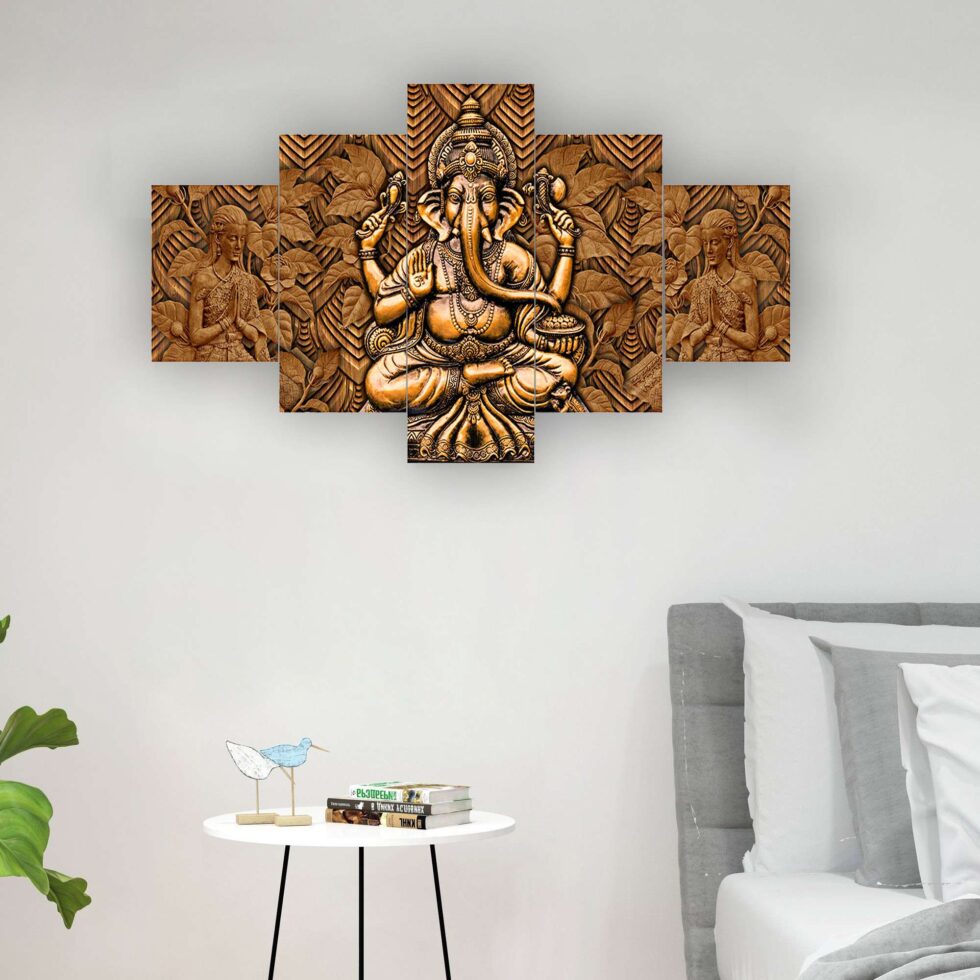 GANESH Set of Five 3D Framed Paintings for Wall Decoration – Ideal for Home, Living Room, and Bedroom (75 x 43 CM)