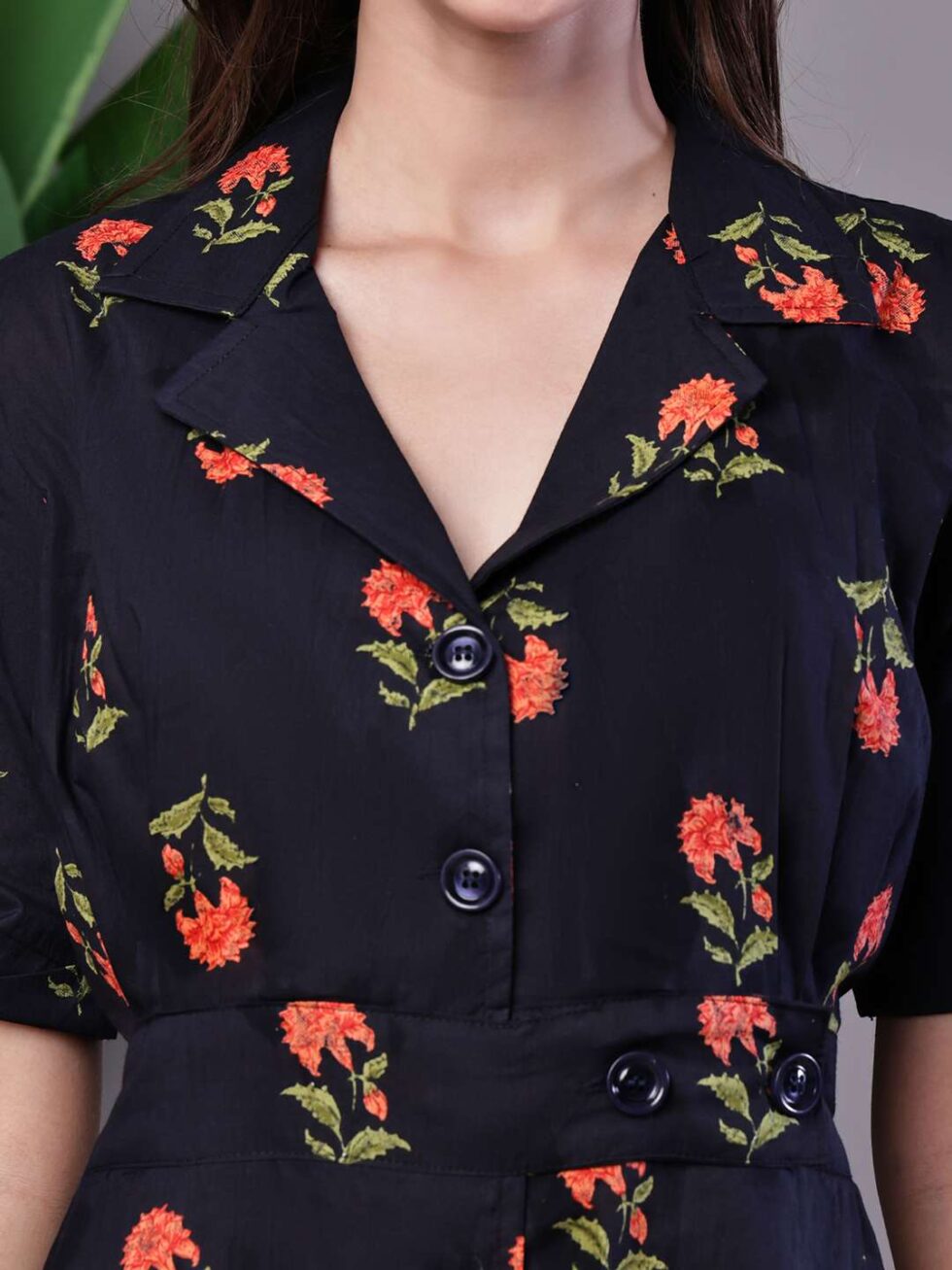 Be the first to review “Women’s Elegant Indigo & Orange Floral Block Print Cotton Shirt Dress”