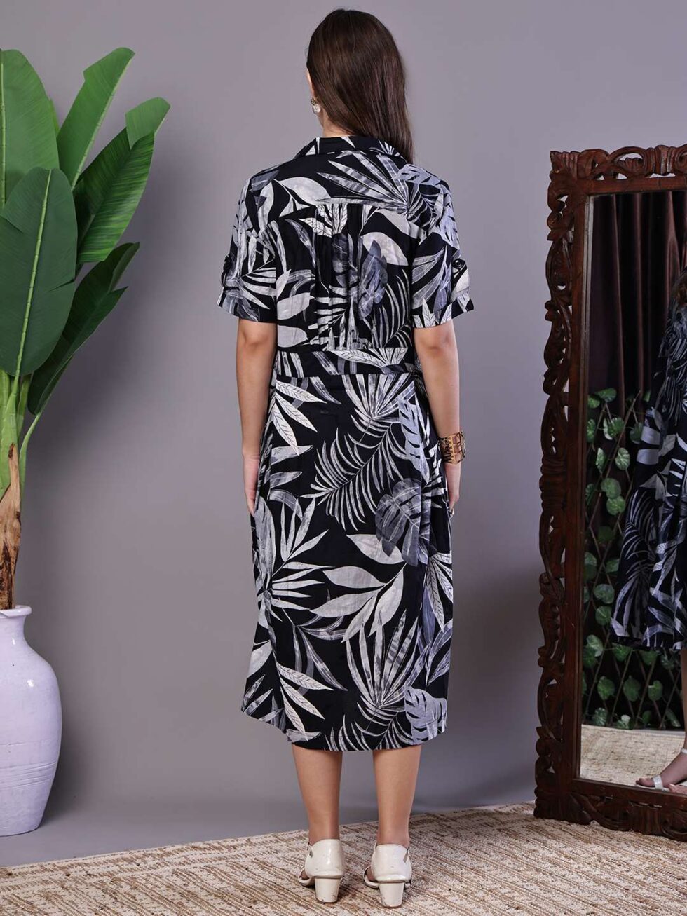 Be the first to review “Women’s Tropical Palm Print Black & White Cotton Shirt Dress”